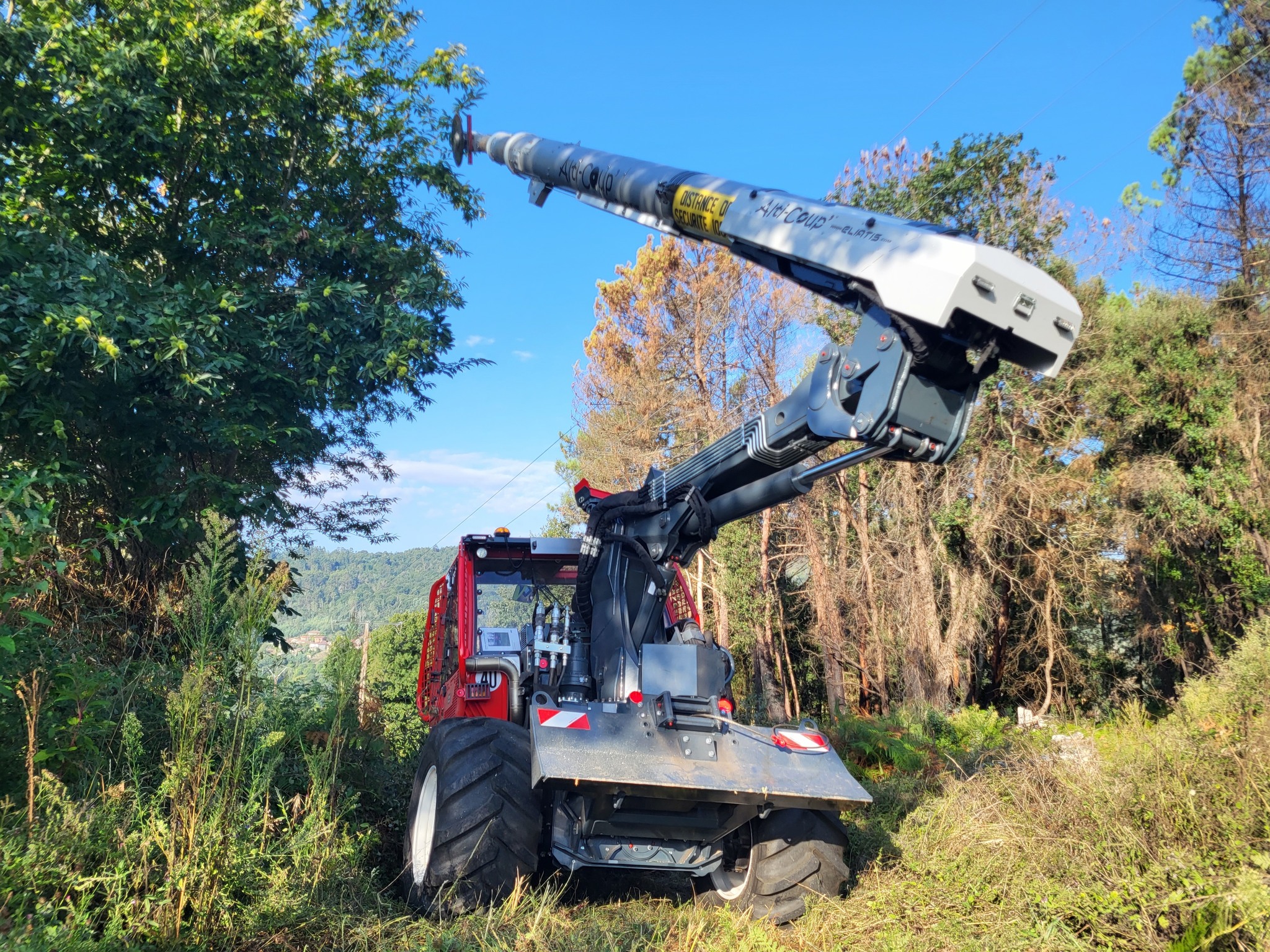 The panoramic cab is designed for long workdays. It is fully heated, air-conditioned, and pressurized, ensuring a clean and comfortable environment. The specific roof glass allows for total visibility during high-reach tasks, while certified operator protections ensure maximum integrity in case of forest incidents.