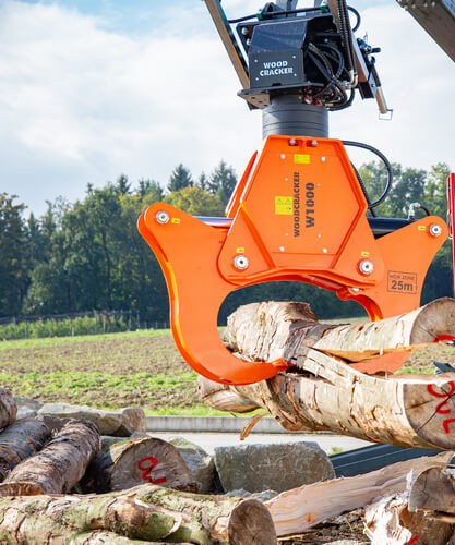 La Woodcracker W1000 est une pince à fendre puissante conçue pour traiter des grumes de gros diamètre avec un effort minimal, sur des excavatrices de 10 à 18 tonnes.