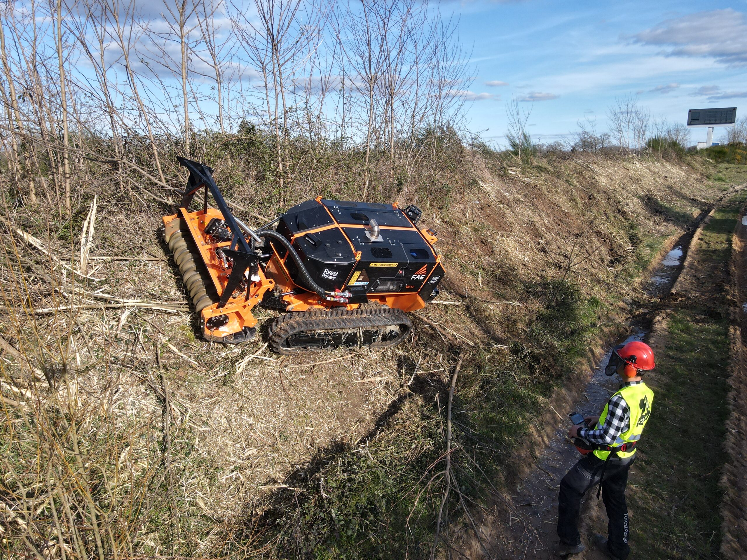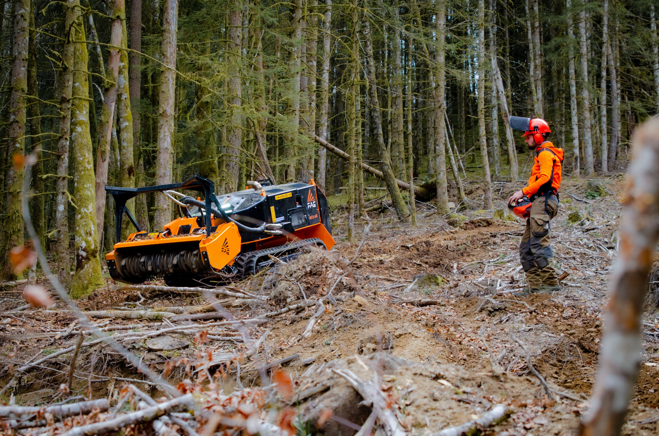 El FAE RCU 55 es un vehículo compacto radiocontrolado de 56 CV, diseñado para ofrecer una eficiencia operativa máxima en terrenos de difícil acceso y pendientes extremas de hasta 55°.